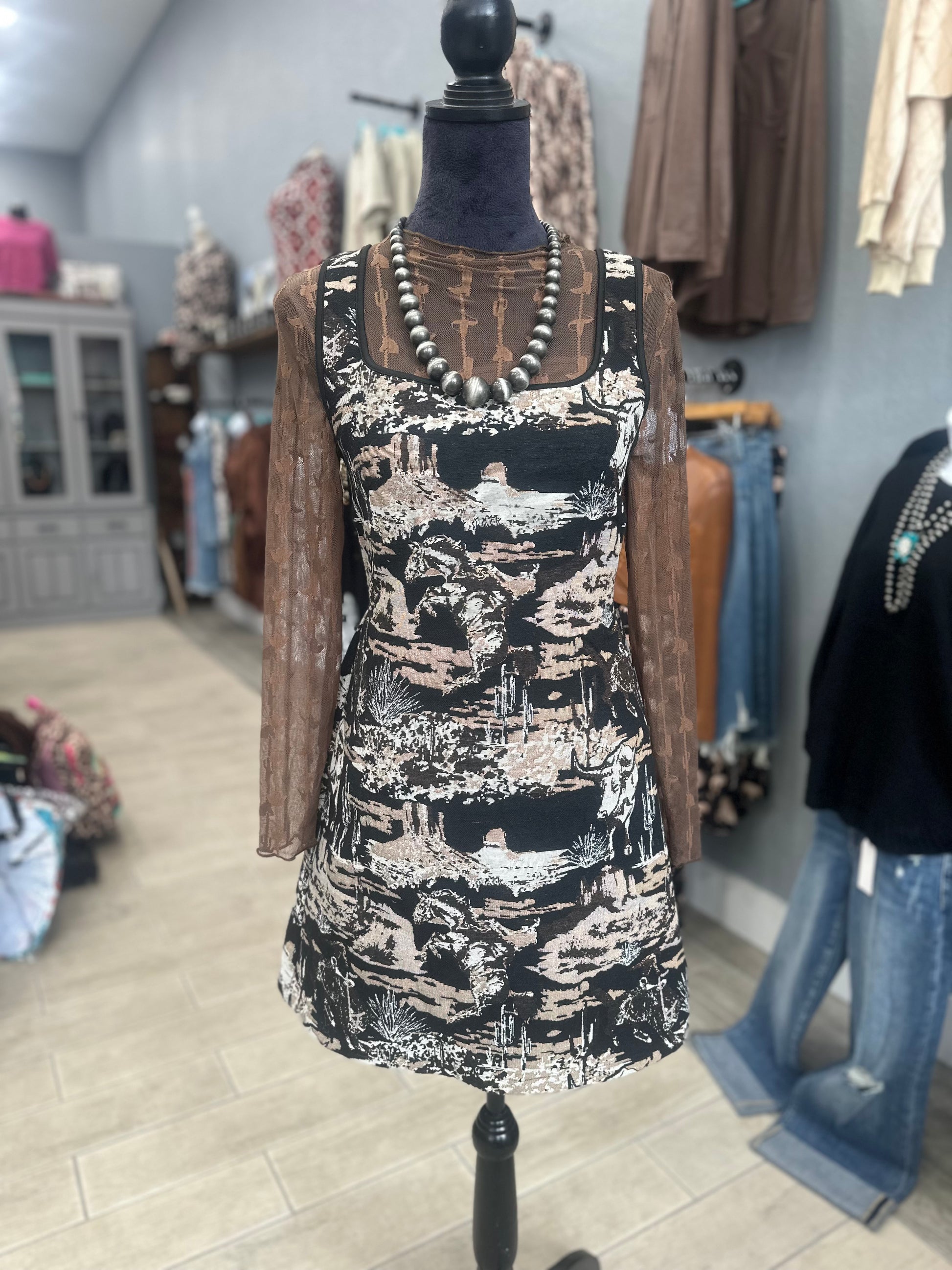 The Lariat Lace Mesh Top in Chocolate